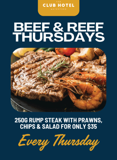 Experience the best of dining and drinks at Club Hotel Waterford. Our bistro offers a diverse menu, from succulent steaks to gourmet burgers, ensuring something for everyone!